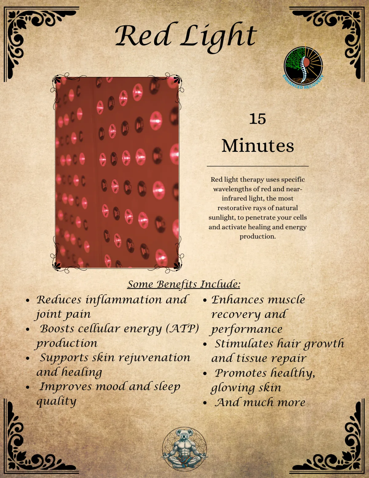 Our Enhanced Recovery Studio is designed to aid in relaxation and give your body all the power to unlock it's natural built in healing powers with optimal benefits and expediency. With 5 Powerful Modalities